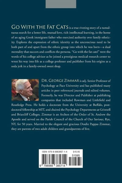 In the 1950's Chicago, the teenage son of Greek immigrants struggles to deal with the ambivalence and challenges of his ethnic identity. Is he Greek or American? He wants to honor his glorious Greek heritage and strict Greek father, but the pull of sexy American girls and the American way of life are too strong to ignore. How will he find his identity, love, and acceptance of who he is?Will the advice of his college mentor, 'go with the fat cats" help him reach his goals? Who are the fat cats anyway?Follow George on his fascinating journey from a soda jerk to a respected university professor in his true home America.His stories will entertain and inspire you to contemplate the experiences and choices that have shaped your life.