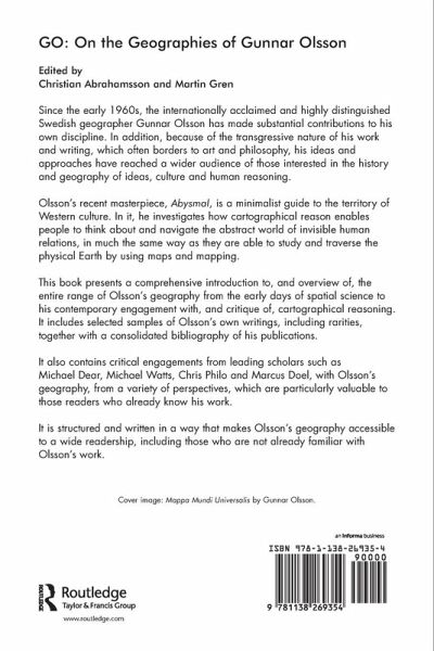 Since the early 1960s, the internationally acclaimed and highly distinguished Swedish geographer Gunnar Olsson has made substantial contributions to his own discipline. In addition, because of the transgressive nature of his work and writing, which often borders to art and philosophy, his ideas and approaches have reached a wider audience of those interested in the history and geography of ideas, culture and human reasoning. Olsson's recent masterpiece, Abysmal, is a minimalist guide to the territory of Western culture. In it, he investigates how cartographical reason enables people to think about and navigate the abstract world of invisible human relations, in much the same way as they are able to study and traverse the physical Earth by using maps and mapping. This book presents a comprehensive introduction to, and overview of, the entire range of Olsson's geography from the early days of spatial science to his contemporary engagement with, and critique of, cartographical reasoning. It includes selected samples of Olsson's own writings, including rarities, together with a consolidated bibliography of his publications. It also contains critical engagements from leading scholars such as Michael Dear, Michael Watts, Chris Philo and Marcus Doel, with Olsson's geography, from a variety of perspectives, which are particularly valuable to those readers who already know his work. It is structured and written in a way that makes Olsson's geography accessible to a wide readership, including those who are not already familiar with Olsson's work.