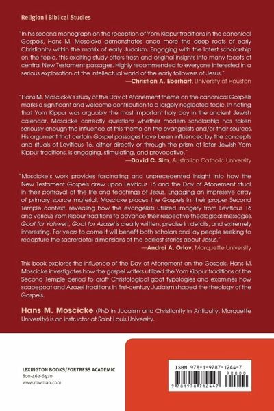 This book explores the influence of the Day of Atonement on the Gospels. Hans M. Moscicke investigates how the gospel writers utilized the Yom Kippur traditions of the Second Temple period to craft Christological goat typologies and examines how scapegoat and Azazel traditions in first-century Judaism shaped the theology of the Gospels.