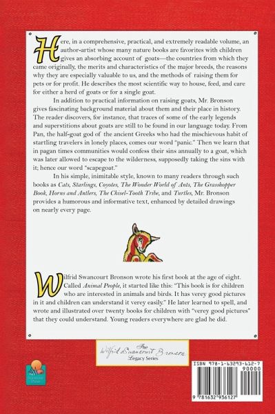 Here, in a comprehensive, practical, and extremely readable volume, an author-artist whose many nature books are favorites with children gives an absorbing account of goats-the countries from which they came originally, the merits and characteristics of the major breeds, the reasons why they are especially valuable to us, and the methods of raising them for pets or for profit. He describes the most scientific way to house, feed, and care for either a herd of goats or for a single goat. In addition to practical information on raising goats, Mr. Bronson gives fascinating background material about them and their place in history. The reader discovers, for instance, that traces of some of the early legends and superstitions about goats are still to be found in our language today. From Pan, the half-goat god of the ancient Greeks who had the mischievous habit of startling travelers in lonely places, comes our word "panic." Then we learn that in pagan times communities would confess their sins annually to a goat, which was later allowed to escape to the wilderness, supposedly taking the sins with it; hence our word "scapegoat." In his simple, inimitable style, known to many readers through such books as "Cats," "Starlings," "Coyotes," "The Wonder World of Ants," "The Grasshopper Book," "Horns and Antlers," "The Chisel-Tooth Tribe," and "Turtles." Mr. Bronson provides a humorous and informative text, enhanced by detailed drawings on nearly every page.