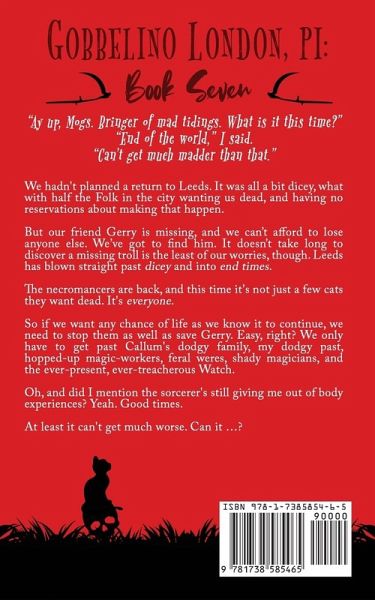 "Ay up, Mogs. Bringer of mad tidings. What is it this time?" "End of the world," I said. "Can't get much madder than that." We hadn't planned a return to Leeds. Not yet, anyway. It was all a bit dicey, what with half the Folk in the city wanting us dead, and apparently having no reservations about making it happen. But our friend Gerry is missing, and we've got to find him. Never mind the fact that anyone who can take out a troll is operating way above our pay grade. It's not like anyone pays us anyway, so what've we got to lose? It doesn't take long to discover a missing troll is the least of our worries. Leeds has blown straight past dicey and into end times. The necromancers are back and as power-sotted as ever, and this time it's not just a few cats they want dead. It's everyone. So if we want any chance of life as we know it to continue, we need to stop them as well as save Gerry. Easy, right? We only have to get past Callum's dodgy family, my dodgy past, hopped-up magic-workers, feral weres, shady magicians, and the ever-present, ever-treacherous Watch. Oh, and did I mention the sorcerer's still giving me out of body experiences? Yeah. Good times. At least it can't get much worse. Can it ...? This is the seventh and final book in the Gobbelino London, PI urban fantasy series, centred around the adventures of a mercenary feline PI and his human sidekick. It contains snarky cats and other gods, many bad jokes and terrible puns, plus a large serving of mythological and real creatures behaving badly. It will appeal to anyone who likes their fantasy funny, modern, and filled with friendship rather than romance - and also to those who suspect their cat may be living a great and secret life when they're not looking. A Collision of Catastrophes contains some violence, particularly involving over-enthusiastic senior citizens and enraged cats, but none of it is graphic. It contains no sex and only mild language. It does, however, contain blasphemy.