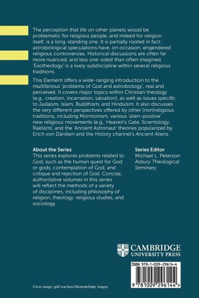 This Element offers a wide-ranging introduction to the multifarious 'problems of God and astrobiology', real and perceived. It covers major topics within Christian theology (e.g., creation, incarnation, salvation), as well as issues specific to Judaism, Islam, Buddhism, and Hinduism.