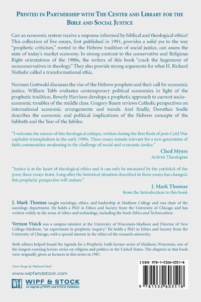 Printed in Partnership with The Center and Library for the Bible and Social Justice Can an economic system receive a response informed by biblical and theological ethics? This collection of five essays, first published in 1991, provides a solid yes to the way ""prophetic criticism,"" rooted in the Hebrew tradition of social justice, can assess the state of today's market economy. In strong contrast to the conservative and Religious Right orientations of the 1980s, the writers of this book ""crack the hegemony of neoconservatives in theology."" They also provide strong arguments for what H. Richard Niebuhr called a transformational ethic. Norman Gottwald discusses the rise of the Hebrew prophets and their call for economic justice. William Tabb evaluates contemporary political economies in light of the prophetic tradition. Beverly Harrison develops a prophetic approach to current socio-economic troubles of the middle class. Gregory Baum reviews Catholic perspectives on international economic arrangements and trends. And finally, Dorothee Soelle describes the economic and political implications of the Hebrew concepts of the Sabbath and the Year of the Jubilee.
