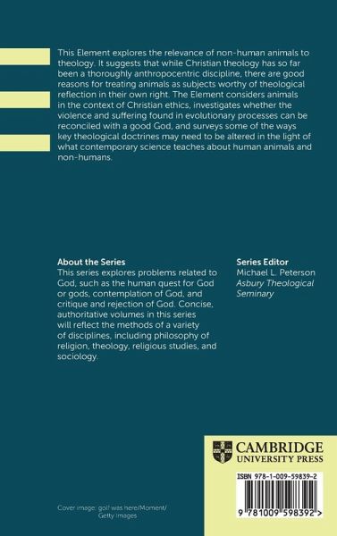 This Element explores the relevance of non-human animals to theology. It suggests that while Christian theology has so far been a thoroughly anthropocentric discipline, there are good reasons for treating animals as subjects worthy of theological reflection in their own right.