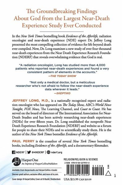 The Groundbreaking Findings About God from the Largest Near-Death Experience Study Ever Conducted In the New York Times bestselling book Evidence of the Afterlife, radiation oncologist and near-death experience (NDE) expert Dr. Jeffrey Long presented the most compelling collection of evidence for life beyond death ever compiled. Now, Dr. Long examines a new study of over four thousand near-death experiences from the Near Death Experience Research Foundation (NDERF) that reveals overwhelming evidence that God is real.