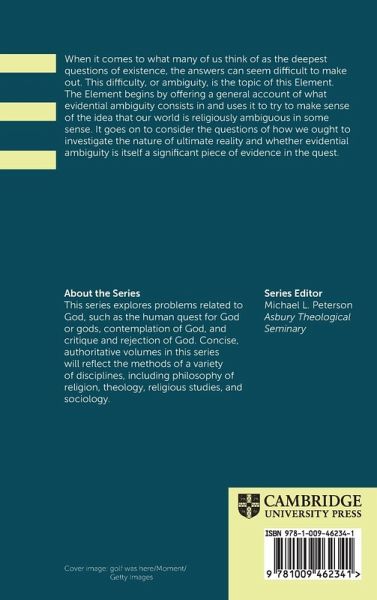 When it comes to what many of us think of as the deepest questions of existence, the answers can seem difficult to make out. This difficulty, or ambiguity, is the topic of this Element. The Element begins by offering a general account of what evidential ambiguity consists in and uses it to try to make sense of the idea that our world is religiously ambiguous in some sense. It goes on to consider the questions of how we ought to investigate the nature of ultimate reality and whether evidential ambiguity is itself a significant piece of evidence in the quest.