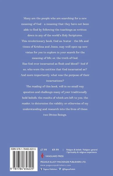 Many are the people who are searching for a new meaning of God - a meaning that they have not been able to find by following the teachings as written down in any of the world's Holy Scriptures. This revolutionary book, God as Avatar - the life and times of Krishna and Jesus, may well open up new vistas for you to explore in your search for the meaning of life; or, the truth of God. Has God ever incarnated as flesh and blood? And if so, who were the entities that God incarnated as? And more importantly, what was the purpose of their incarnations? The reading of this book, will in no small way question and challenge many of your traditionally held beliefs; the results of which are left to you, the reader, to determine the validity or otherwise of my understanding and research into the lives of these two Divine Beings.