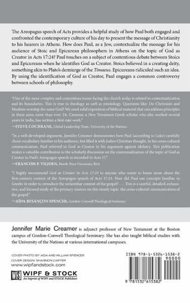 The Areopagus speech of Acts provides a helpful study of how Paul both engaged and confronted the contemporary culture of his day to present the message of Christianity to his hearers in Athens. How does Paul, as a Jew, contextualize the message for his audience of Stoic and Epicurean philosophers in Athens on the topic of God as Creator in Acts 17:24? Paul touches on a subject of contentious debate between Stoics and Epicureans when he identifies God as Creator. Stoics believed in a creating deity, something akin to Plato's demiurge of the Timaeus. Epicureans ridiculed such an idea. By using the identification of God as Creator, Paul engages a common controversy between schools of philosophy.