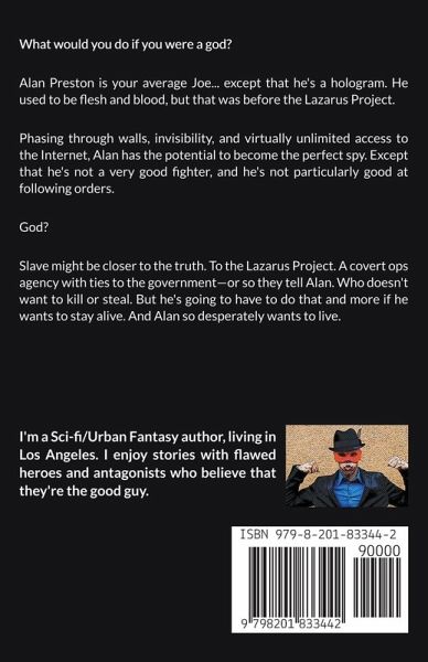 What would you do if you were a god? Alan Preston is your average Joe... except that he's a hologram. He used to be flesh and blood, but that was before the Lazarus Project. Phasing through walls, invisibility, and virtually unlimited access to the Internet, Alan has the potential to become the perfect spy. Except that he's not a very good fighter, and he's not particularly good at following orders. God? Slave might be closer to the truth. To the Lazarus Project. A covert ops agency with ties to the government-or so they tell Alan. Alan doesn't want to kill or steal. But he's going to have to do that and more if he wants to stay alive. And Alan so desperately wants to live.