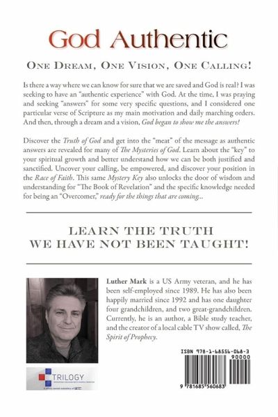 One Dream, One Vision, One Calling! Is there a way where we can know for sure that we are saved and God is real? I was seeking to have an "authentic experience" with God. At the time, I was praying and seeking "answers" for some very specific questions, and I considered one particular verse of Scripture as my main motivation and daily marching orders. And then, through a dream and a vision, God began to show me the answers! Discover the Truth of God and get into the "meat" of the message as authentic answers are revealed for many of The Mysteries of God. Learn about the "key" to your spiritual growth and better understand how we can be both justified and sanctified. Uncover your calling, be empowered, and discover your position in the Race of Faith. This same Mystery Key also unlocks the door of wisdom and understanding for "The Book of Revelation" and the specific knowledge needed for being an "Overcomer," ready for the things that are coming... LEARN THE TRUTH WE HAVE NOT BEEN TAUGHT!