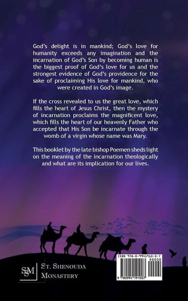 God's delight is in mankind; God's love for humanity exceeds any imagination and the incarnation of God's Son by becoming human is the biggest proof of God's love for us and the strongest evidence of God's providence for the sake of proclaiming His love for mankind, who was created in God's image. If the cross revealed to us the great love, which fills the heart of Jesus Christ, then the mystery of incarnation proclaims the magnificent love, which fills the heart of our heavenly Father who accepted that His Son be incarnate through the womb of a virgin whose name was Mary. This booklet by the late bishop Poemen sheds light on the meaning of the incarnation theologically and what are its implication for our lives.