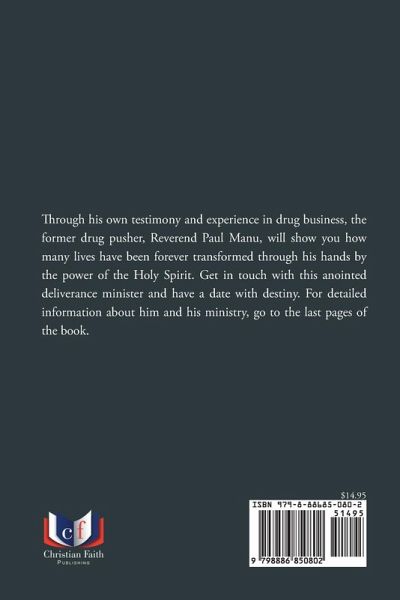 Through his own testimony and experience in drug business, the former drug pusher, Reverend Paul Manu, will show you how many lives have been forever transformed through his hands by the power of the Holy Spirit. Get in touch with this anointed deliverance minister and have a date with destiny. For detailed information about him and his ministry, go to the last pages of the book.