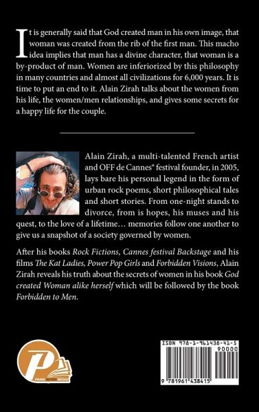 It is generally said that God created man in his own image, that woman was created from the rib of the first man. This macho idea implies that man has a divine character, that woman is a by-product of man. Women are inferiorized by this philosophy in many countries and almost all civilizations for 6,000 years. It is time to put an end to it. Alain Zirah talks about the women from his life, the women/men relationships, and gives some secrets for a happy life for the couple.