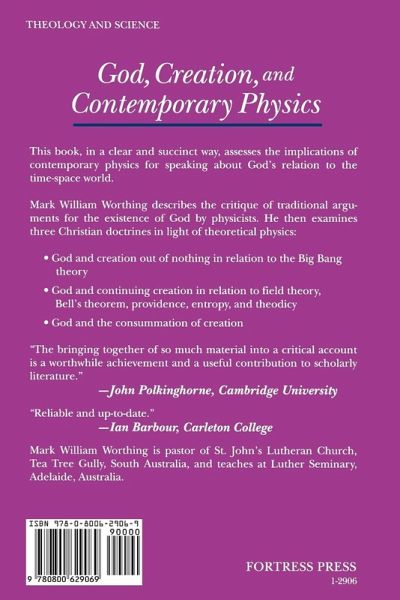 Worthing describes the critique of traditional arguments for God's existence by physicists. He then examines three Christian doctrines in light of theoretical physics--God and creation out of nothing in relation to the Big Bang Theory; God and continuing creation in relation to field theory, Bell's theorem, providence, entropy, and theodicy; and God and the consummation of creation.