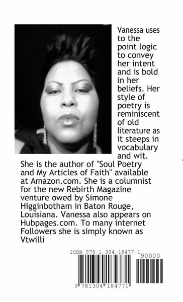 Filled with inspirational articles and poetry that empowers, Vanessa T Williams sheds the light on forms of bondage that hinders spiritual growth and stems depression. She shows that Satan uses subtle devices to ensnare. This book invites the reader to uses prayer as a defense to remain steadfast. The greatest point of this book is to pray for enemies. Vanessa believes that to be set free Christians must remove all forms of bitterness. This book is a tool for the broken marriage and the chaotic workplace. The strength that her poetry produces leaves the reader charged and ready to take on the world. The Word of God is the inspiration that guides this author and she wants her audience to understand their worth in Christ Jesus.