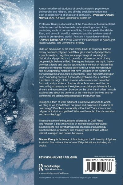 Choice Essential Read Did God create man or did man create God? In this book, Dianna Kenny examines religious belief through a variety of perspectives - psychoanalytic, cognitive, neuropsychological, sociological, historical and psychiatric - to provide a coherent account of why people might believe in God. She argues that psychoanalytic theory provides a fertile and creative approach to the study of religion that attempts to integrate religious belief with our innate human nature and developmental histories that have unfolded in the context of our socialization and cultural experiences. Freud argued that religion is so compelling because it solves the problems of our existence. It explains the origin of the universe, offers solace and protection from evil, and provides a blueprint about how we should live our lives, with just rewards for the righteous and due punishments for sinners and transgressors. Science, on the other hand, offers no such explanations about the universe or the meaning of our lives and no comfort for the unanswered longings of the human race. Is religion a form of wish-fulfilment, a collective delusion to which we cling as we try to fathom our place and purpose in the drama of cosmology? Can there be morality without faith? Are science and religion radically incompatible? What are the roots of fundamentalism and terror theology? These are some of the questions addressed in God, Freud and Religion, a book that will be of interest to psychoanalysts, psychologists and psychotherapists, students of psychology, psychoanalysis, philosophy and theology and all those with an interest in religion and human behaviour. Dianna Kenny is Professor of Psychology at the University of Sydney, Australia. She is the author of over 200 publications, including six books.
