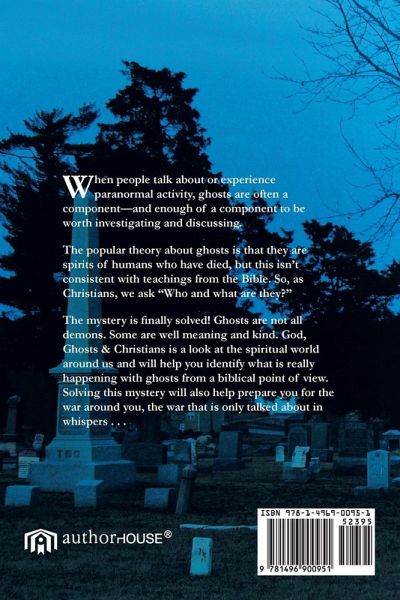 When people talk about or experience paranormal activity, ghosts are often a component-and enough of a component to be worth investigating and discussing. The popular theory about ghosts is that they are spirits of humans who have died, but this isn't consistent with teachings from the Bible. So, as Christians, we ask "Who and what are they?" To answer this, God, Ghosts & Christians looks briefly at various current theories, followed by an extensive look at ghosts from a Christian point of view, supported by biblical passages and personal experiences of the author and others. The author, an ordained minister, will take you through all aspects of the existence of ghosts in our world-from the ones that are demons to those that are well meaning and kind. Don't be fooled by media and nonbelievers-there is a quiet, but serious, war going on between Christians and ghosts. This book will affirm your beliefs, show you how to protect yourself and those you love and encourage you to help quiet the "whispers," and win the war.