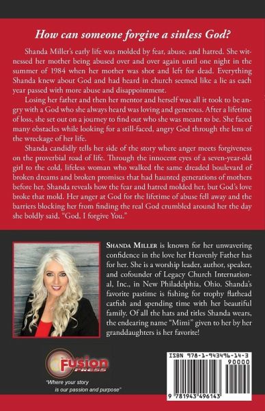 How can someone forgive a sinless God? Shanda Miller's early life was molded by fear, abuse, and hatred. She witnessed her mother being abused over and over again until one night in the summer of 1984 when her mother was shot and left for dead. Everything Shanda knew about God and had heard in the church seemed like a lie as each year passed with more abuse and disappointment. Losing her father, her mentor, and herself was all it took to be angry with a God who she always heard was loving and generous. After a lifetime of loss, she set out on a journey to find out who she was meant to be. She faced many obstacles while looking for a still-faced, angry God through the lens of the wreckage of her life. Shanda candidly tells her side of the story where anger meets forgiveness on the proverbial road of life. Through the innocent eyes of a seven-year-old girl to the cold, lifeless woman who walked the same dreaded boulevard of broken dreams and broken promises that had haunted generations of mothers before her, Shanda reveals how the fear and hatred molded her, but God's love broke that mold. Her anger at God for the lifetime of abuse fell away and the barriers blocking her from finding the real God crumbled around her the day she boldly said, "God, I forgive You."