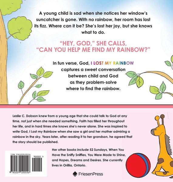 A young child is sad when she notices her window's suncatcher is gone. With no rainbow, her room has lost its fizz. Where can it be? She's lost her joy, but she knows what to do. "Hey, God," she calls, "can you help me find my rainbow?" In fun verse, God, I Lost my Rainbow captures a sweet conversation between child and God as they problem-solve where to find the rainbow.