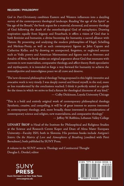 Argues for a new elemental and sensory experience of God. God in Post-Christianity combines Eastern and Western influences into a dazzling survey of the contemporary theological landscape. Reading "the age of the Spirit" as "the age of the Breath," the book argues for a material, elemental, and sensory theology of God following the death of the ontotheological God of metaphysics. Drawing inspiration equally from Irigaray and Feuerbach, it offers a vision of God that is both feminist and humanist, a divine becoming for humanity, a sacred alliance with Nature. By presenting and analyzing the modern philosophies of Hegel, Schelling, and Merleau-Ponty, as well as such contemporary figures as John Caputo and Catherine Keller, and by drawing on unexpected, forgotten, or neglected sources such as Vedic poetry and American Mormonism and figures such as Averroes and Amalric of Bène, the book makes an original argument about God that resonates with currents in new materialism, comparative theology, and affect theory. Both speculative and mythopoetic, it is intended to forge a way forward for humanity to achieve the intersubjective and interreligious peace we all crave and deserve.