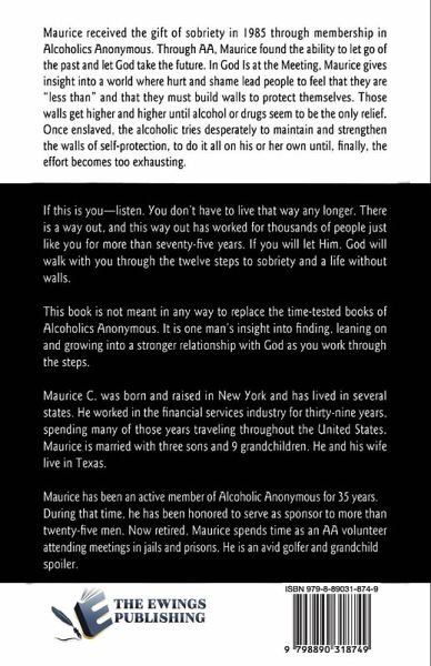 Maurice C. received the gift of sobriety in 1985 through membership in Alcoholics Anonymous. Through AA, Maurice found the ability to let go of the past and let God take the future. In God Is at the Meeting, Maurice gives insight into a world where hurt and shame lead people to feel that they are "less than" and that they must build walls to protect themselves. Those walls get higher and higher until alcohol or drugs seem to be the only relief. Once enslaved, the alcoholic tries desperately to maintain and strengthen the walls of self-protection, to do it all on his or her own until, finally, the effort becomes too exhausting. If this is you - listen. You don't have to live that way any longer. There is a way out, and the way out has worked for thousands of people just like you for more than seventy-five years. If you will let Him. God will walk with you through the twelve steps to sobriety and a life without walls. This is not meant in any way to replace the time-tested books of Alcoholics Anonymous. It is one man's insight into finding, leaning on and growing into a stronger relationship with God as you work through the steps.