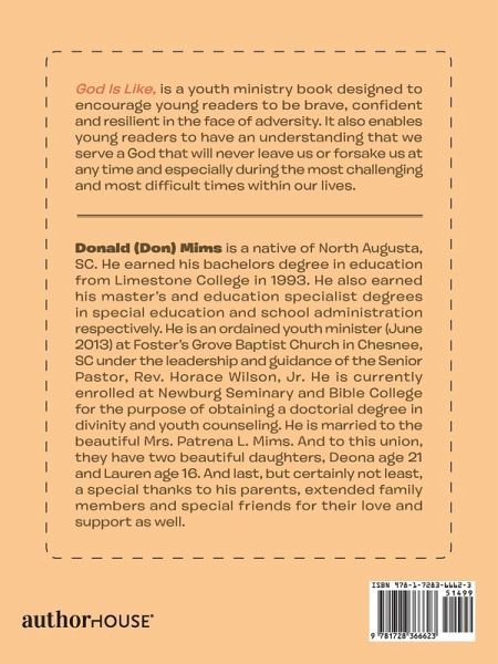 God Is Like, is a youth ministry book designed to encourage young readers to be brave, confident and resilient in the face of adversity. It also enables young readers to have an understanding that we serve a God that will never leave us or forsake us at any time and especially during the most challenging and most difficult times within our lives.