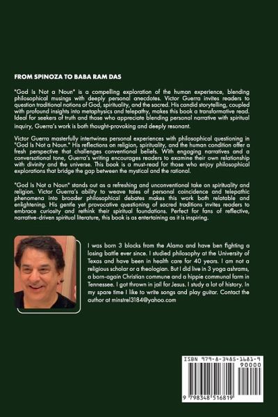 Blending deep intellectual inquiry with personal anecdotes, Guerra explores how humanity has shaped the concept of God over time-giving it names, rules, and meanings that may have little to do with any ultimate truth. Through engaging storytelling, he delves into telepathy, mystical experiences, and the human search for meaning, questioning whether God is an external entity or a construct of the human mind. For seekers of wisdom, skeptics, and believers alike, God Is Not a Noun is an invitation to question, explore, and embrace the mystery of existence. This book is for those who are willing to move beyond dogma and into a deeper understanding of the spiritual and the unknown. Also, it is a good introduction, explaining the main concepts of Hinduism, Taoism, Sikhism and Buddhism.