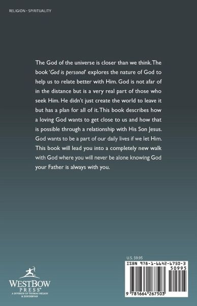 The God of the universe is closer than we think. The book 'God is personal' explores the nature of God to help us to relate better with Him. God is not afar of in the distance but is a very real part of those who seek Him. He didn't just create the world to leave it but has a plan for all of it. This book describes how a loving God wants to get close to us and how that is possible through a relationship with His Son Jesus. God wants to be a part of our daily lives if we let Him. This book will lead you into a completely new walk with God where you will never be alone knowing God your Father is always with you.
