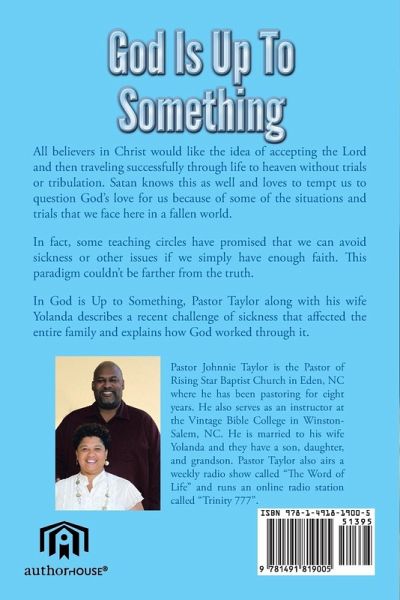 All believers in Christ would like the idea of accepting the Lord and then traveling successfully through life to heaven without trials or tribulation. Satan knows this as well and loves to tempt us to question God's love for us because of some of the situations and trials that we face here in a fallen world. In fact, some teaching circles have promised that we can avoid sickness or other issues if we simply have enough faith. This paradigm couldn't be farther from the truth. In God is Up to Something, Pastor Taylor along with his wife Yolanda describes a recent challenge of sickness that affected the entire family and explains how God worked through it.