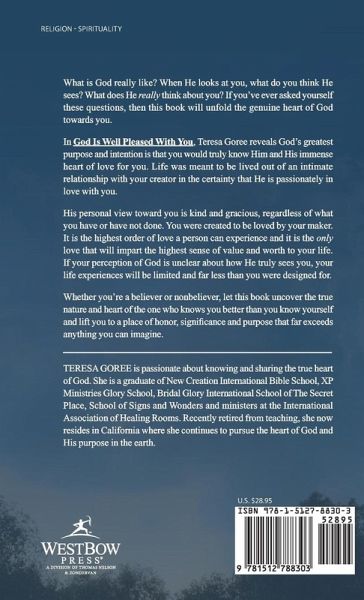What is God really like? When He looks at you, what do you think He sees? What does He really think about you? If you’ve ever asked yourself these questions, then this book will unfold the genuine heart of God towards you. In God Is Well Pleased With You, Teresa Goree reveals God’s greatest purpose and intention is that you would truly know Him and His immense heart of love for you. Life was meant to be lived out of an intimate relationship with your creator in the certainty that He is passionately in love with you. His personal view toward you is kind and gracious, regardless of what you have or have not done. You were created to be loved by your maker. It is the highest order of love a person can experience and it is the only love that will impart the highest sense of value and worth to your life. If your perception of God is unclear about how He truly sees you, your life experiences will be limited and far less than you were designed for. Whether you’re a believer or nonbeliever, let this book uncover the true nature and heart of the one who knows you better than you know yourself and lift you to a place of honor, significance and purpose that far exceeds anything you can imagine.