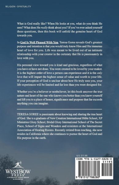 What is God really like? When He looks at you, what do you think He sees? What does He really think about you? If you’ve ever asked yourself these questions, then this book will unfold the genuine heart of God towards you. In God Is Well Pleased With You, Teresa Goree reveals God’s greatest purpose and intention is that you would truly know Him and His immense heart of love for you. Life was meant to be lived out of an intimate relationship with your creator in the certainty that He is passionately in love with you. His personal view toward you is kind and gracious, regardless of what you have or have not done. You were created to be loved by your maker. It is the highest order of love a person can experience and it is the only love that will impart the highest sense of value and worth to your life. If your perception of God is unclear about how He truly sees you, your life experiences will be limited and far less than you were designed for. Whether you’re a believer or nonbeliever, let this book uncover the true nature and heart of the one who knows you better than you know yourself and lift you to a place of honor, significance and purpose that far exceeds anything you can imagine.