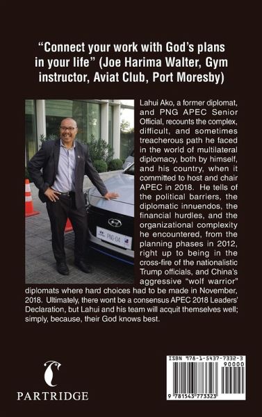 Lahui Ako, a former diplomat, and PNG APEC Senior Official, recounts the complex, difficult, and sometimes treacherous path he faced in the world of multilateral diplomacy, both by himself, and his country, when it committed to host and chair APEC in 2018. He tells of the political barriers, the diplomatic innuendos, the financial hurdles, and the organizational complexity he encountered, from the planning phases in 2012, right up to being in the cross-fire of the nationalistic Trump officials, and China's aggressive "wolf warrior" diplomats where hard choices had to be made in November, 2018. Ultimately, there wont be a consensus APEC 2018 Leaders' Declaration, but Lahui and his team will acquit themselves well; simply, because, their God knows best.