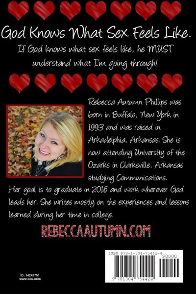 If God knows what sex, the strongest force in the human world, feels like, he must understand what I'm going through! "God Knows What Sex Feels Like" isn't just another book of what to do and what not to do, it's about discovery! Rebecca Autumn goes through the trials of life with you as she learns about herself along the way. Pick up this book to learn more about yourself and the Bible's view on the temptations we face every day.
