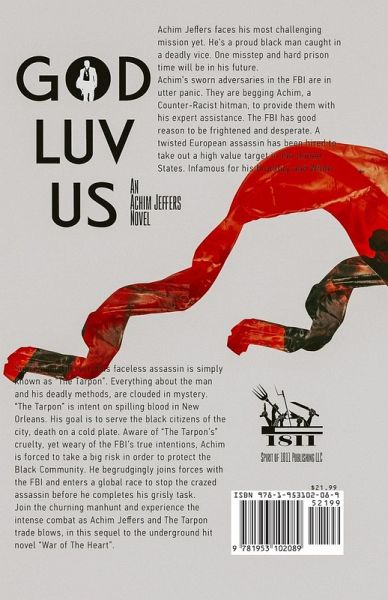Achim Jeffers faces his most challenging mission yet. He's a proud black man caught in a deadly vice. One misstep and hard prison time will be in his future. Achim's sworn adversaries in the FBI are in utter panic. They are begging Achim, a Counter-Racist hitman, to provide them with his expert assistance. The FBI has good reason to be frightened and desperate. A twisted European assassin has been hired to take out a high value target in the United States. Infamous for his brutality and White Supremacist fervor, this faceless assassin is simply known as "The Tarpon". Everything about the man and his deadly methods, are clouded in mystery. "The Tarpon" is intent on spilling blood in New Orleans. His goal is to serve the black citizens of the city, death on a cold plate. Aware of "The Tarpon's" cruelty, yet weary of the FBI's true intentions, Achim is forced to take a big risk in order to protect the Black Community. He begrudgingly joins forces with the FBI and enters a global race to stop the crazed assassin before he completes his grisly task. Join the churning manhunt and experience the intense combat as Achim Jeffers and The Tarpon trade blows, in this sequel to the underground hit novel "War of The Heart".