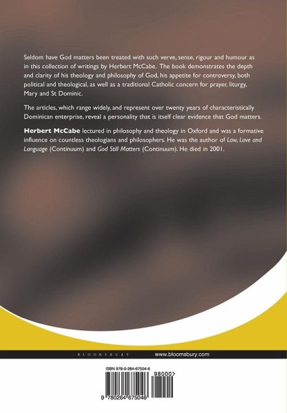 This work demonstrates the depth and clarity of Herbert McCabe's theology and philosophy of God, his appetite for controversy, both political and theolgical, as well as a traditional catholic concern for prayer, liturgy, Mary and St Dominic.