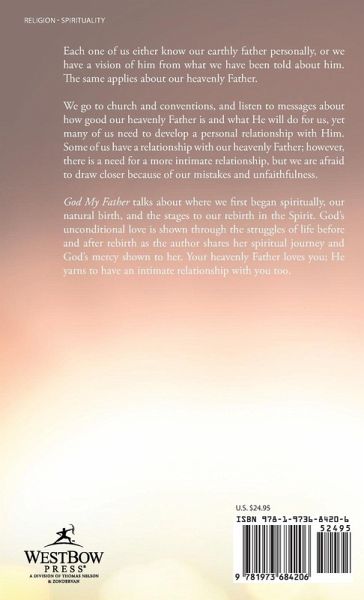 Each one of us either know our earthly father personally, or we have a vision of him from what we have been told about him. The same applies about our heavenly Father. We go to church and conventions, and listen to messages about how good our heavenly Father is and what He will do for us, yet many of us need to develop a personal relationship with Him. Some of us have a relationship with our heavenly Father; however, there is a need for a more intimate relationship, but we are afraid to draw closer because of our mistakes and unfaithfulness. God My Father talks about where we first began spiritually, our natural birth, and the stages to our rebirth in the Spirit. God's unconditional love is shown through the struggles of life before and after rebirth as the author shares her spiritual journey and God's mercy shown to her. Your heavenly Father loves you; He yarns to have an intimate relationship with you too.