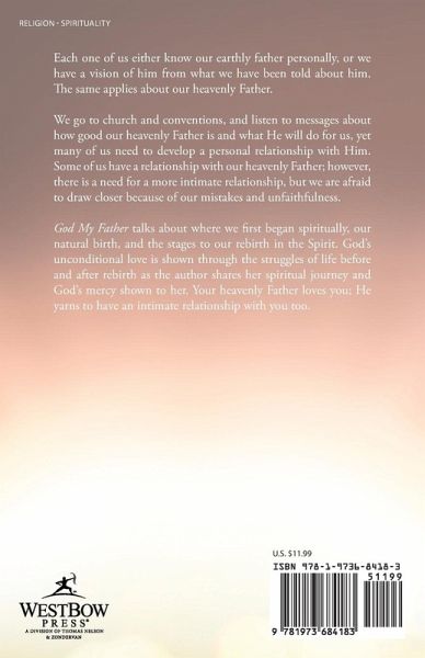 Each one of us either know our earthly father personally, or we have a vision of him from what we have been told about him. The same applies about our heavenly Father. We go to church and conventions, and listen to messages about how good our heavenly Father is and what He will do for us, yet many of us need to develop a personal relationship with Him. Some of us have a relationship with our heavenly Father; however, there is a need for a more intimate relationship, but we are afraid to draw closer because of our mistakes and unfaithfulness. God My Father talks about where we first began spiritually, our natural birth, and the stages to our rebirth in the Spirit. God's unconditional love is shown through the struggles of life before and after rebirth as the author shares her spiritual journey and God's mercy shown to her. Your heavenly Father loves you; He yarns to have an intimate relationship with you too.