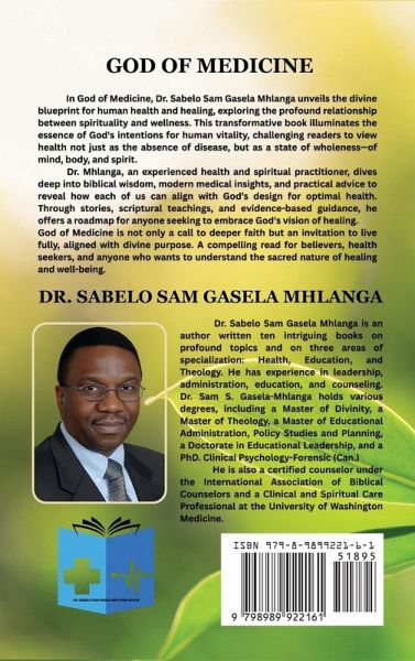 In God of Medicine, Dr. Sabelo Sam Gasela Mhlanga unveils the divine blueprint for human health and healing, exploring the profound relationship between spirituality and wellness. This transformative book illuminates the essence of God's intentions for human vitality, challenging readers to view health not just as the absence of disease, but as a state of wholeness-of mind, body, and spirit. Dr. Mhlanga, an experienced health and spiritual practitioner, dives deep into biblical wisdom, modern medical insights, and practical advice to reveal how each of us can align with God's design for optimal health. Through stories, scriptural teachings, and evidence-based guidance, he offers a roadmap for anyone seeking to embrace God's vision of healing. God of Medicine is not only a call to deeper faith but an invitation to live fully, aligned with divine purpose. A compelling read for believers, health seekers, and anyone who wants to understand the sacred nature of healing and well-being.
