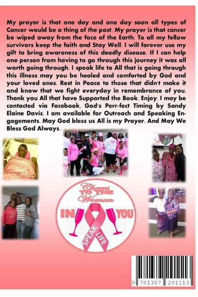 This book is a true story of the healing power of God. You will hear accounts of actual events that happened in the life of Sandy Davis, breast cancer survivor. This story will move you and give you hope for your sistuation.