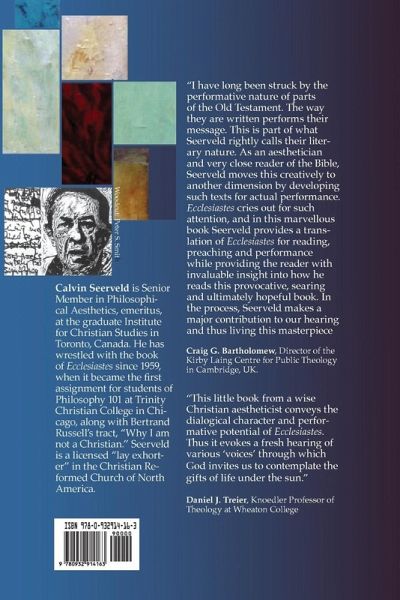 "This book is a literary English translation of the Biblical book Ecclesiastes as a chorus of different voices (like the book of Job) contesting the meaning of things. A careful introduction delineates the various speakers--Qohelet, editor, apprentice rabbis, the Woman Wisdom (of Proverbs) voice--along with a sevenfold refrain, and reports on the various ways the whole piece has been performed in Canada, the USA and Spain. A very brief review of a few artworks by Goya, Rouault and Kollwitz hint at themes in Ecclesiastes. A thesis for the oral, performative nature of the Scriptures is articulated, along with a couple of pastoral expositions of the book"--