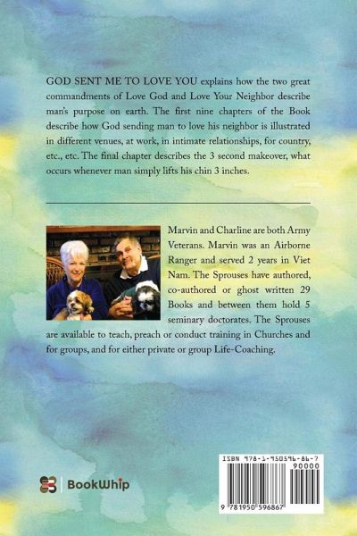 God Sent Me to Love You explains how the two great commandments of Love God and Love Your Neighbor describe man's purpose on earth. The first nine chapters of the Book describe how God sending man to love his neighbor is illustrated in different venues, at work, in intimate relationships, for country, etc., etc. The final chapter describes the 3 second makeover, what occurs whenever man simply lifts his chin 3 inches.