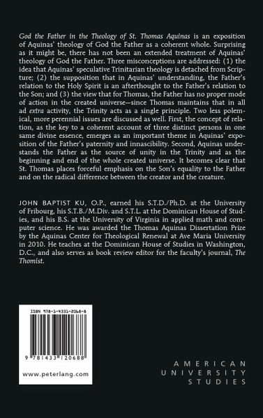 God the Father in the Theology of St. Thomas Aquinas is an exposition of Aquinas' theology of God the Father as a coherent whole. Surprising as it might be, there has not been an extended treatment of Aquinas' theology of God the Father. Three misconceptions are addressed: (1) the idea that Aquinas' speculative Trinitarian theology is detached from Scripture; (2) the supposition that in Aquinas' understanding, the Father's relation to the Holy Spirit is an afterthought to the Father's relation to the Son; and (3) the view that for Thomas, the Father has no proper mode of action in the created universe - since Thomas maintains that in all ad extra activity, the Trinity acts as a single principle. Two less polemical, more perennial issues are discussed as well. First, the concept of relation, as the key to a coherent account of three distinct persons in one same divine essence, emerges as an important theme in Aquinas' exposition of the Father's paternity and innascibility. Second,Aquinas understands the Father as the source of unity in the Trinity and as the beginning and end of the whole created universe. It becomes clear that St. Thomas places forceful emphasis on the Son's equality to the Father and on the radical difference between the creator and the creature.