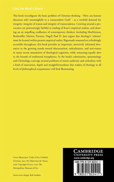 This 2004 book reconfigures the basic problem of Christian thinking - 'How can human discourse refer meaningfully to a transcendent God?' - as a twofold demand for integrity: integrity of reason and integrity of transcendence. Centring around a provocative yet penetratingly faithful re-reading of Kant's empirical realism, and drawing on an impelling confluence of contemporary thinkers (including MacKinnon, Bonhoeffer, Marion, Putnam, Nagel) Paul D. Janz argues that theology's 'referent' must be located within present empirical reality. Rigorously reasoned yet refreshingly accessible throughout, this book provides an important, attentively informed alternative to the growing trends toward obscurantism, radicalization and anti-reason in many recent assessments of theological cognition, while remaining equally alert to the hazards of traditional metaphysics. In the book's culmination, epistemology and Christology converge around problems of noetic authority and orthodoxy with a kind of innovation, depth and straightforwardness that readers of theology at all levels of philosophical acquaintance will find illuminating.