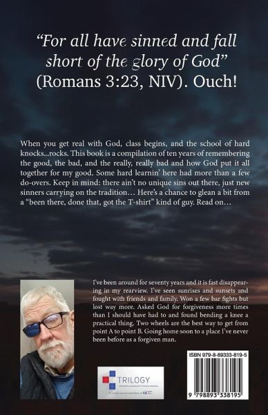 "For all have sinned and fall short of the glory of God" (Romans 3:23, NIV). Ouch! When you get real with God, class begins, and the school of hard knocks..rocks. This book is a compilation of ten years of remembering the good, the bad, and the really, really bad and how God put it all together for my good. Some hard learnin' here had more than a few do-overs. Keep in mind: there ain't no unique sins out there, just new sinners carrying on the tradition... Here's a chance to glean a bit from a "been there, done that, got the T-shirt" kind of guy. Read on...