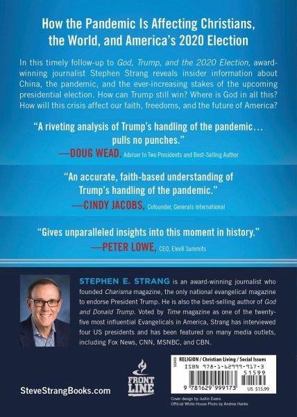 From the best-selling author of God and Donald Trump, which was brandished by the president at the World Economic Forum in Davos How the Pandemic Has Affected the World, America, and the 2020 Election This book is a timely follow up to God, Trump and the 2020 Election that reveals insider information about China, the virus, and the ever-increasing stakes of the upcoming election. It will answer the question for the Christian believers (and seekers) of where God is in all this? It provides a little known prophecy by the late David Wilkerson about a plague coming that would shut down the government as well as churches and bars, including shaking New York City as it's never been shaken. Wilkerson said this plague would force believers into radical prayer that will spark an awakening--something echoed by Christian leaders and prophets. Just as the economy was booming and Donald Trump was fixing long-term problems and beating back attacks from his opponents, a brand-new virus shakes up everything including the outcome of this election. The author has inside information about what happened in China early in the pandemic and what went wrong. He even documents how Donald Trump has led the nation in this time of crisis. In 2016, God raised up Donald Trump to lead America at a pivotal time. Evangelicals who recognized this backed him more than any other presidential candidate in history. Heading into Election Day 2020, the stakes are even higher, especially with the uncertainty and upheaval caused by COVID-19. This book is really "part two" of God, Trump and the 2020 Election which details the fight for the soul of America. Strang believes readers need both books to understand and explain what's at stake. With the shutdown caused by the pandemic, serious anti-Christian trends surfaced, such as some states closing "non-essential" churches but allowing liquor stores to provide curbside service. Or ceasing all elective surgeries except abortion, which is the taking of a life while the purpose in shutting down the economy was to save lives from this dreaded virus. Other Books Available: God, Trump, and the 2020 Election ISBN: 9781629996653 (2020) Trump Aftershock ISBN: 9781629995557 (2018) God and Donald Trump ISBN: 9781629994864 (2017)