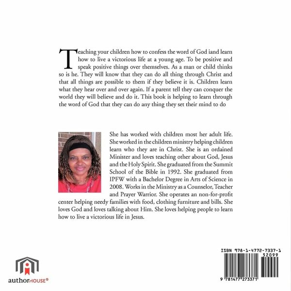 Teaching your children how to confess the word of God iand learn how to live a victorious life at a young age. To be positive and speak positive things over themselves. As a man or child thinks so is he. They will know that they can do all thing through Christ and that all things are possible to them if they believe it is. Children learn what they hear over and over again. If a parent tell they can conquer the world they will believe and do it. This book is helping to learn through the word of God that they can do any thing they set their mind to do
