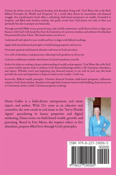 God Wants Me to Be Rich! is a transformative guide that reveals how God's plan for your life includes both spiritual fulfillment and financial abundance. Rooted in biblical principles, this powerful book provides practical insights and actionable steps to help you break free from financial struggles and live in alignment with God's purpose for your wealth. Through engaging chapters and scripture-based teachings, you will explore the divine foundation for wealth and learn how to cultivate a prosperous mindset that honors God's Word. This book doesn't just focus on material riches-it addresses a holistic approach to wealth that embraces generosity, stewardship, and faithful living. What you'll discover in this book: How to align your financial life with God's divine purpose for abundance. The biblical foundations for building and managing wealth. Strategies for overcoming financial limitations and breaking the cycle of lack. How to cultivate a millionaire mindset rooted in faith and integrity. The importance of generosity and stewardship in achieving lasting prosperity. Whether you're an entrepreneur, professional, or someone seeking financial freedom through faith, God Wants Me to Be Rich! equips you with the tools to live abundantly. You'll gain practical steps to grow your income, manage your resources wisely, and honor God in the process. This book will challenge your thinking about money, reshape your understanding of God's role in your finances, and inspire you to embrace His promises for wealth and success. With powerful Bible verses and life-changing advice, God Wants Me to Be Rich! is your key to unlocking the financial prosperity that God has always intended for you. Take the first step toward financial freedom and spiritual prosperity today. God Wants Me to Be Rich! will show you how to live in abundance, trust in God's provision, and create a lasting legacy of faith and prosperity.