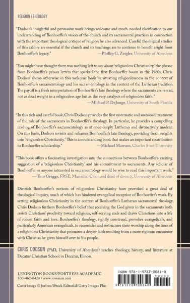 Chris Dodson places Bonhoeffer’s religionless Christianity in the context of his Lutheran sacramental theology, revealing the former as a faithful product of receiving Christ in baptism, Eucharist, and confession. This reframing then serves to challenge American evangelical traditions to reconceptualize their worship in a more religionless manner.