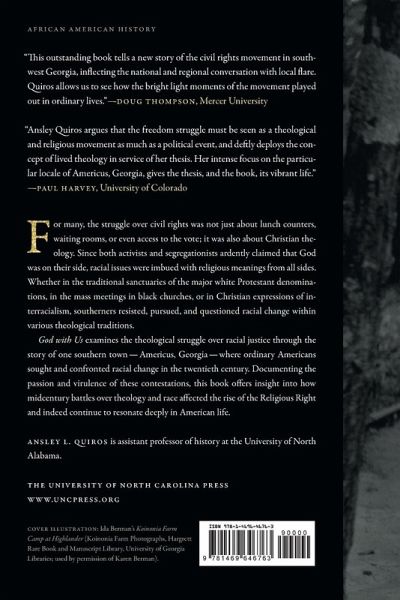 For many, the struggle over civil rights was not just about lunch counters, waiting rooms, or even access to the vote; it was also about Christian theology. Since both activists and segregationists ardently claimed that God was on their side, racial issues were imbued with religious meanings from all sides. Whether in the traditional sanctuaries of the major white Protestant denominations, in the mass meetings in black churches, or in Christian expressions of interracialism, southerners resisted, pursued, and questioned racial change within various theological traditions. God with Us examines the theological struggle over racial justice through the story of one southern town — Americus, Georgia — where ordinary Americans sought and confronted racial change in the twentieth century. Documenting the passion and virulence of these contestations, this book offers insight into how midcentury battles over theology and race affected the rise of the Religious Right and indeed continue to resonate deeply in American life.