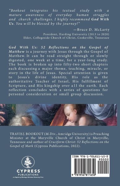 God With Us: 52 Reflections on the Gospel of Matthew is a journey with Jesus through the Gospel of Matthew. It can be read straight through or slowly digested, one week at a time, for a year-long study. The book is broken up into fifty-two short chapters each discussing a major theme, teaching, miracle, or story in the life of Jesus. Special attention is given to His divine identity, His role as the authoritative Teacher of Israel, His fulfillment of Scripture, and His kingship over all the earth. Each reflection concludes with a series of questions for personal consideration or small group discussion.